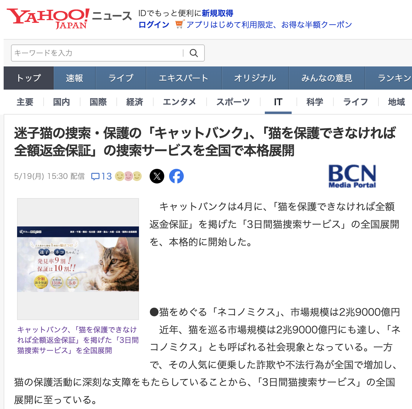 今回の「ネコ探偵」のyahooニュース掲載がまさにそれです。